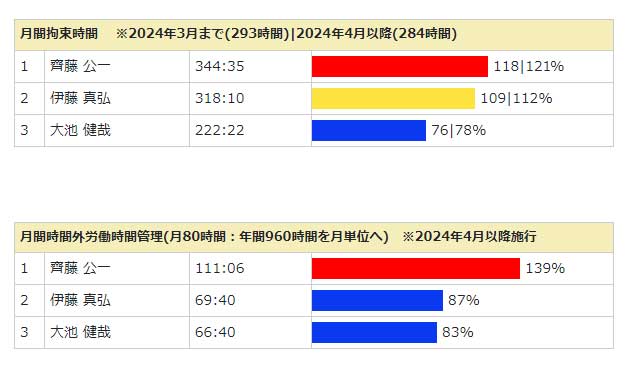 どのドライバーが時間外労働が多いのかすぐにわからない